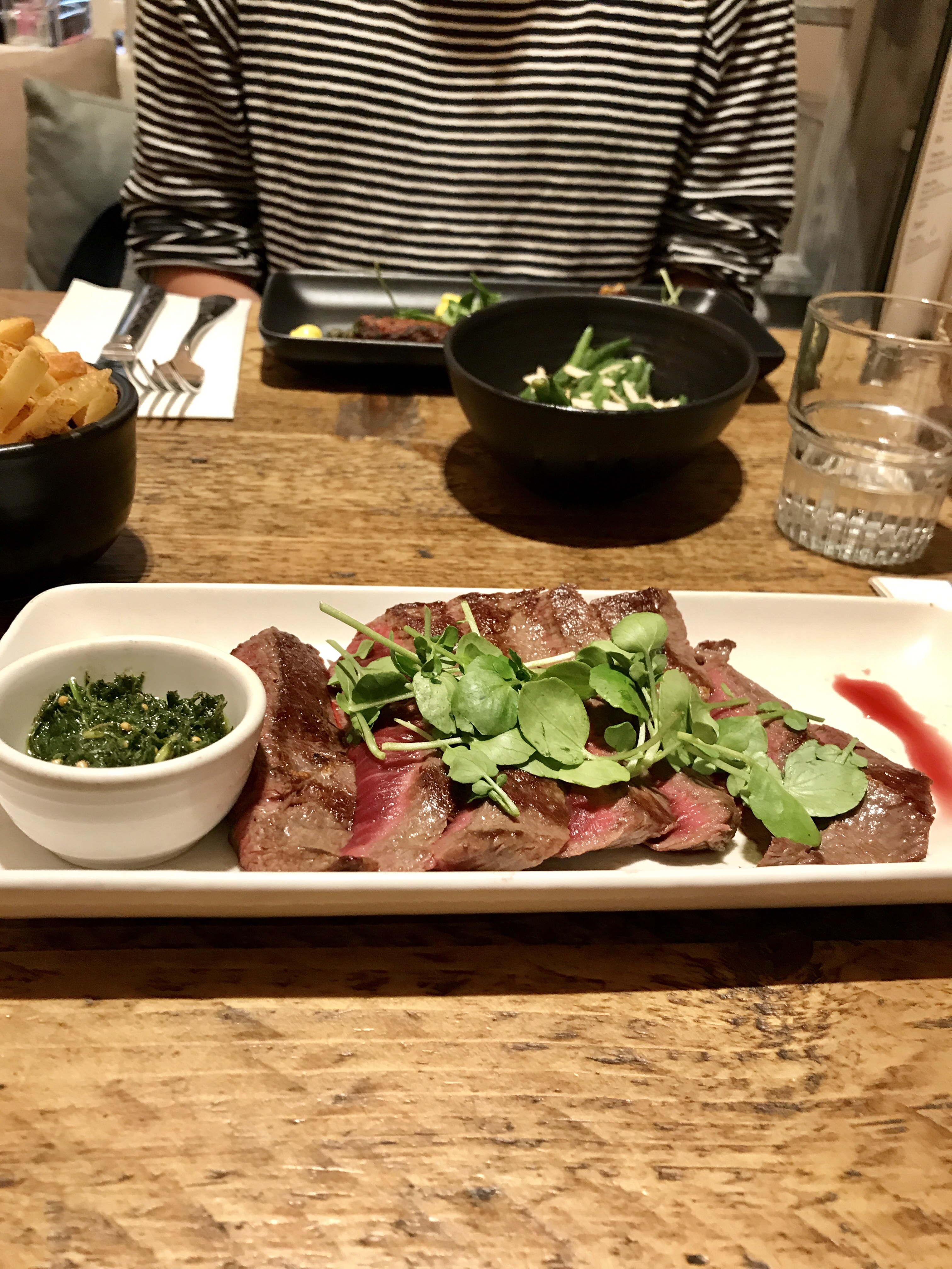 British flat iron steak, mojo verde sauce