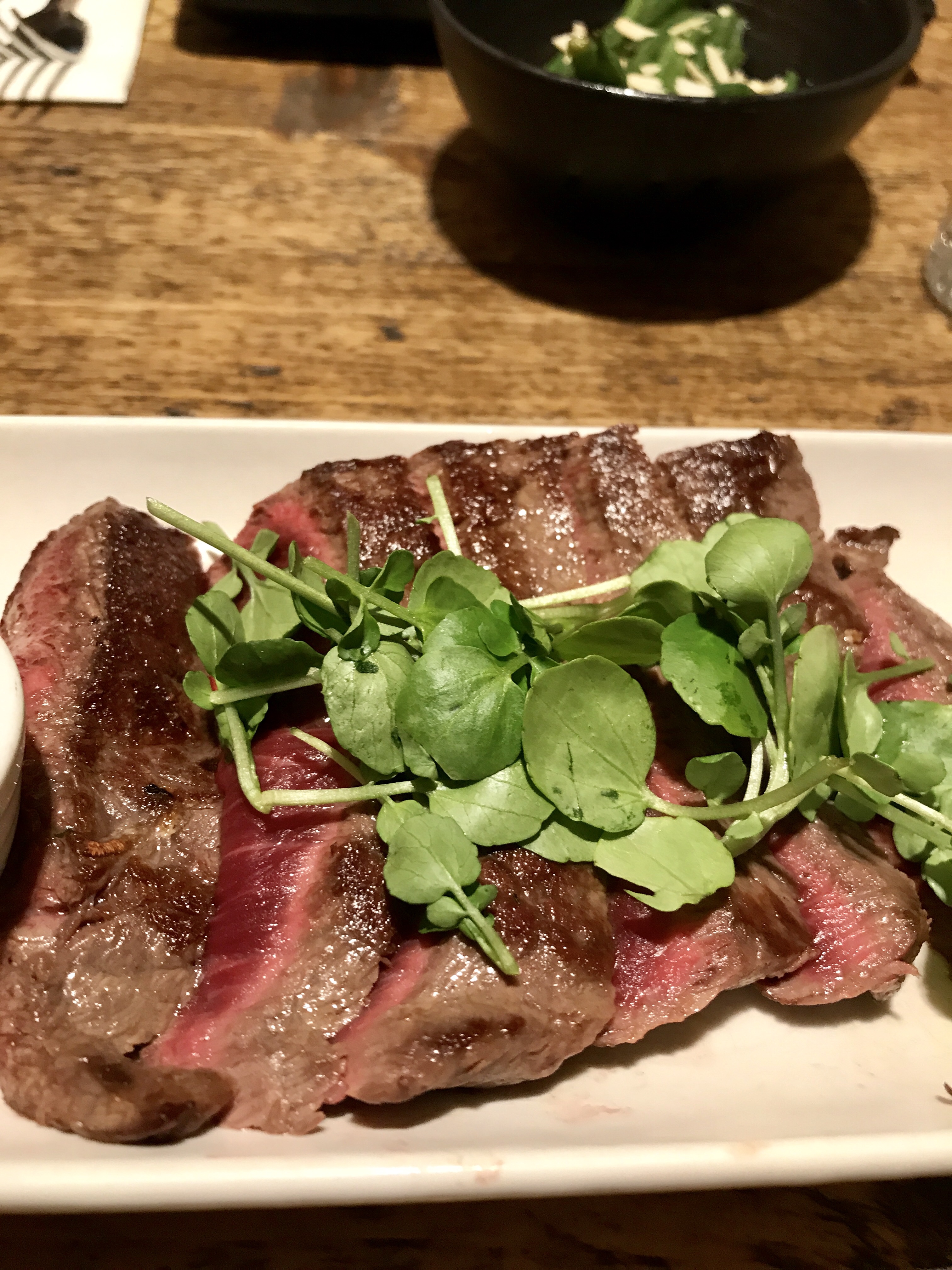 British flat iron steak, mojo verde sauce