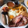 2 Eggs, Sausages & Bacon, Mushroom, Tomato, Beans, Potatoes, 2 Pancakes and Maple Syrup