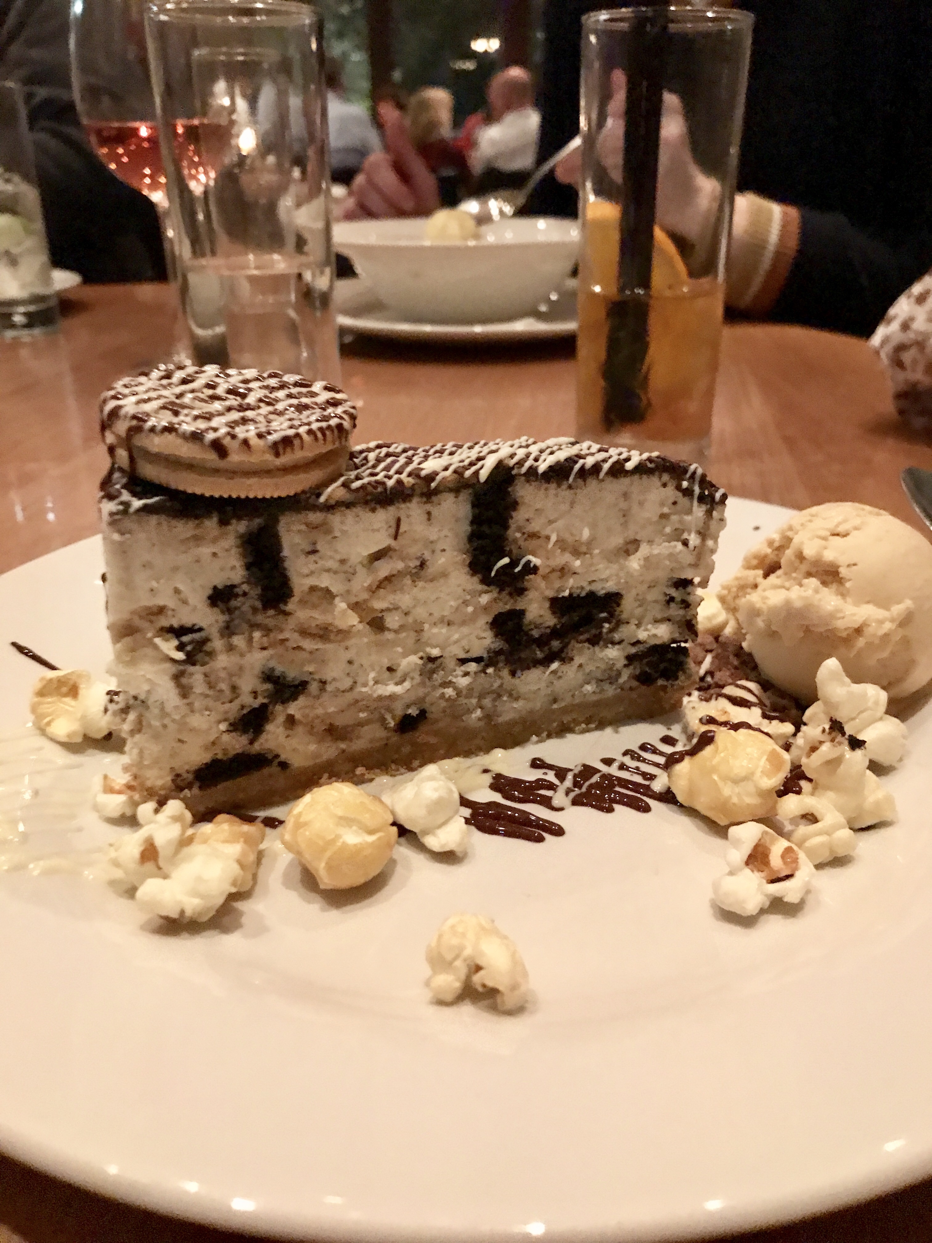 Oreo cookie cheesecake, peanut butter ice-cream, salted caramel popcorn.